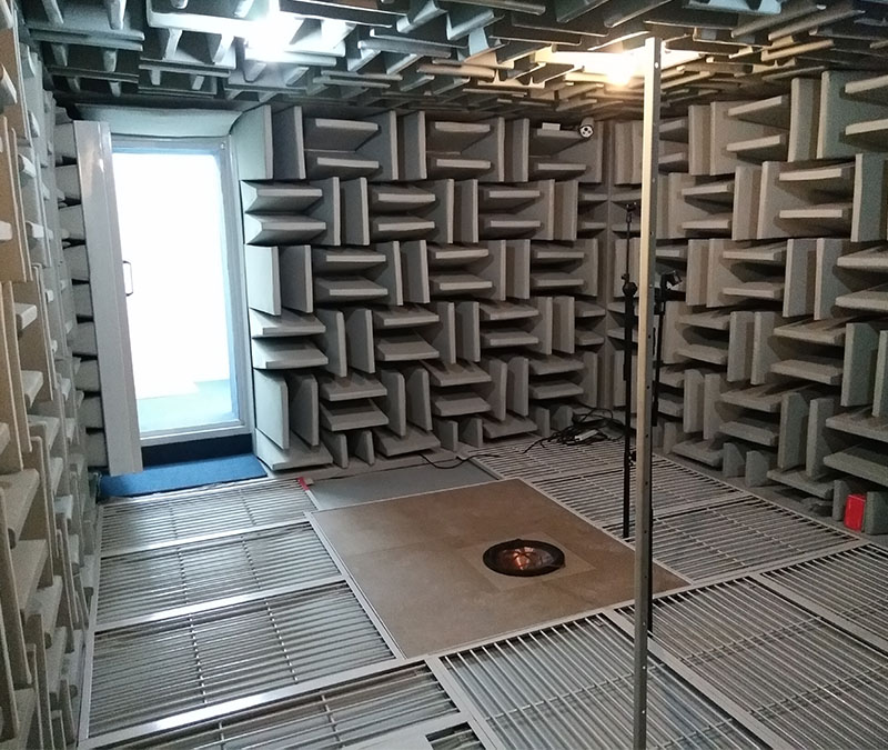 全消聲室是消聲室中的一種稱呼,具有高級別的聲學精密程度。在全消聲室內(nèi),會對墻體、頂部和底部做聲學消聲處理,形成一個低本底噪聲分貝值的聲學自由場,往往適用于聲學測試條件嚴格的產(chǎn)品噪聲測試中。