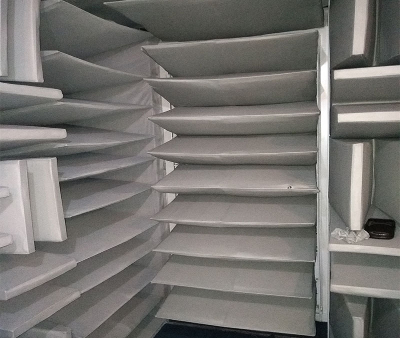 3、自由聲場設(shè)計:通過安裝具有吸聲隔音性質(zhì)的消聲尖劈構(gòu)建全消聲室內(nèi)的聲學自由場,用到的消聲尖劈,則需要根據(jù)Fo截止頻率,來進行計算和設(shè)計出消聲尖劈需要的尺寸規(guī)格。